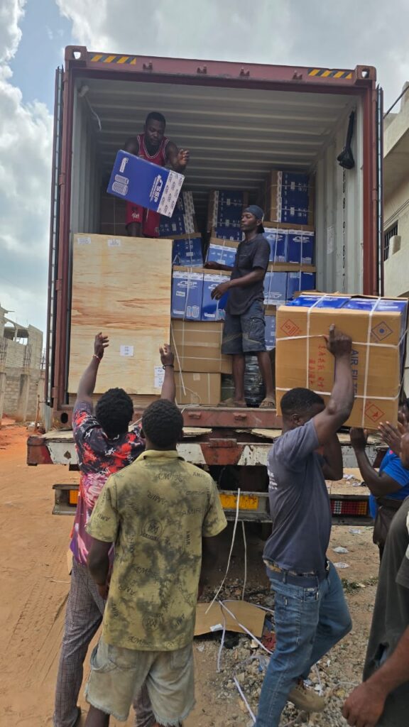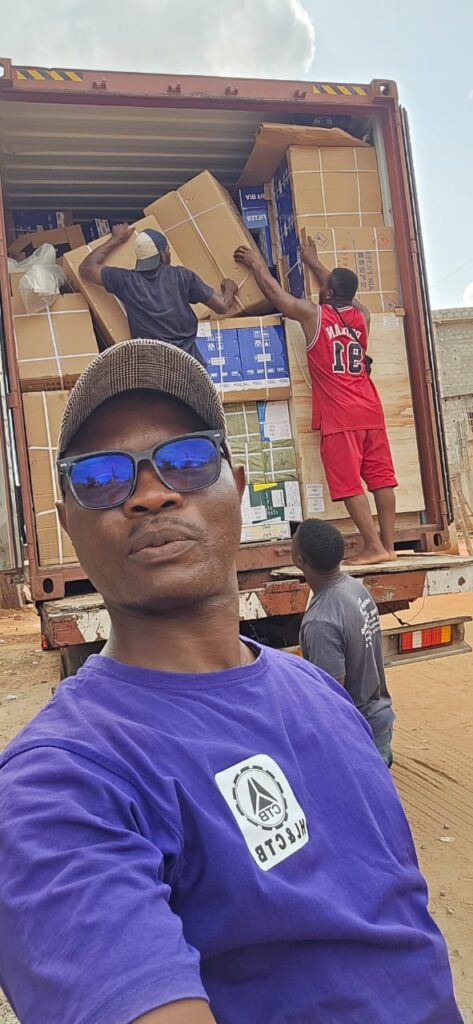 Nos équipes sur le chantier du travail….Une opération de déchargement de marchandise.